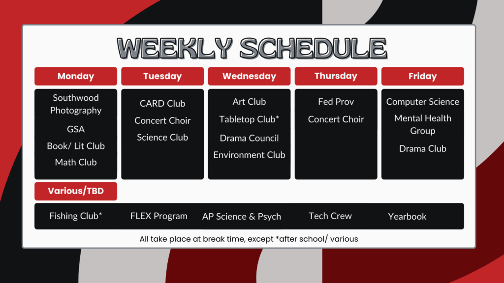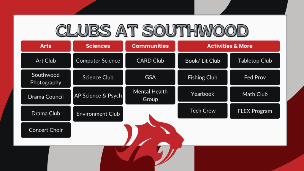 Southwood prides itself on being an involved community and makes sure that a wide variety of opportunities are available for students. Check out the clubs offered at Southwood and get involved in the options that are a right fit for you!